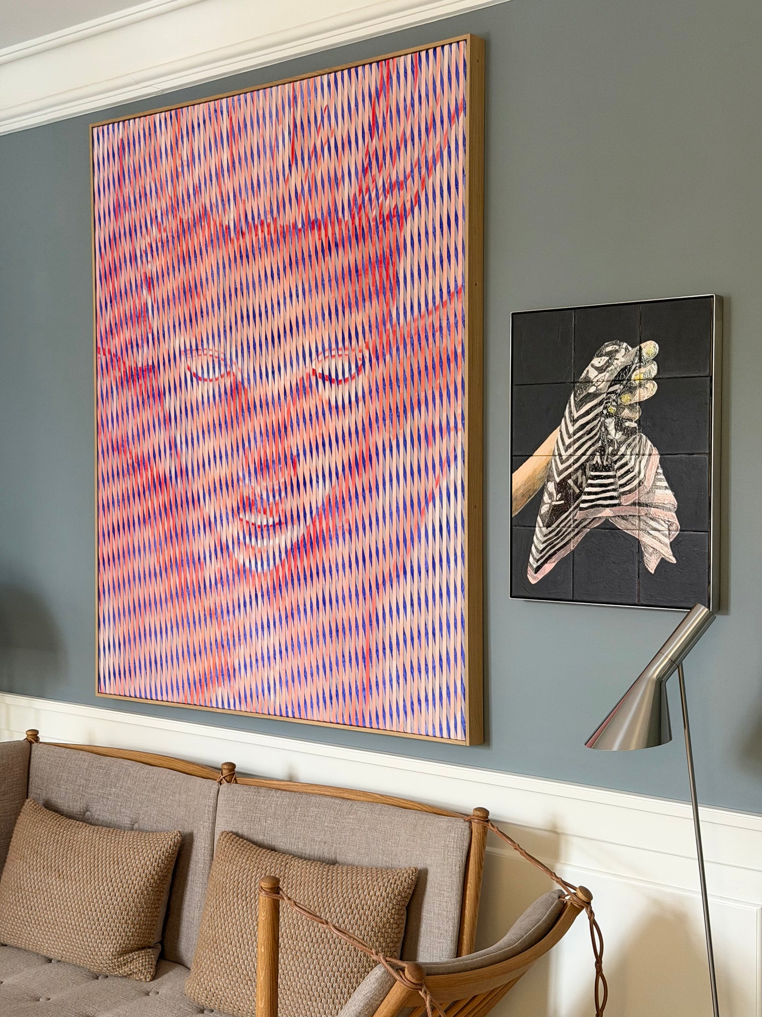 Tempera on two canvases woven together